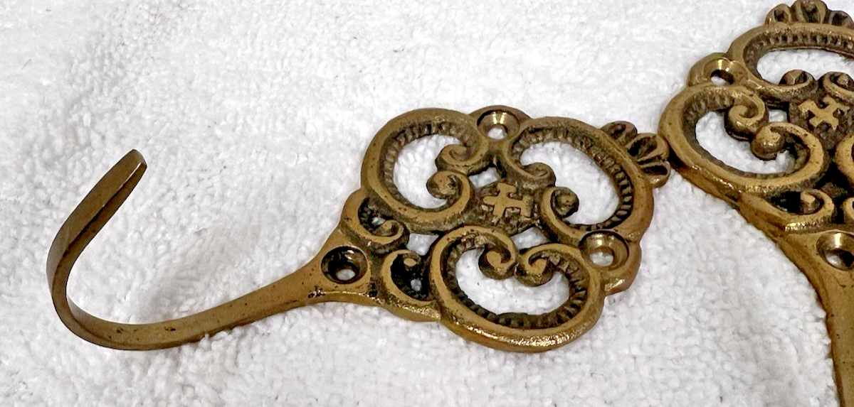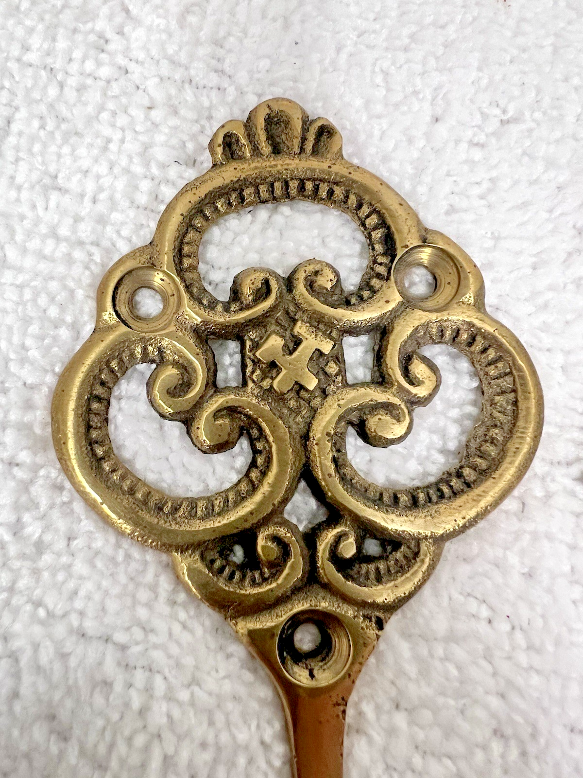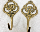 2 Vintage Brass Wall Hooks w Scrolly Top 4 1/4 T 2 5/8" Deep Hook