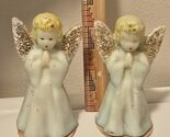 - 2 Vintage GURLEY 5" Praying Angel Christmas Candles Novelty Glitter Wings Unlit