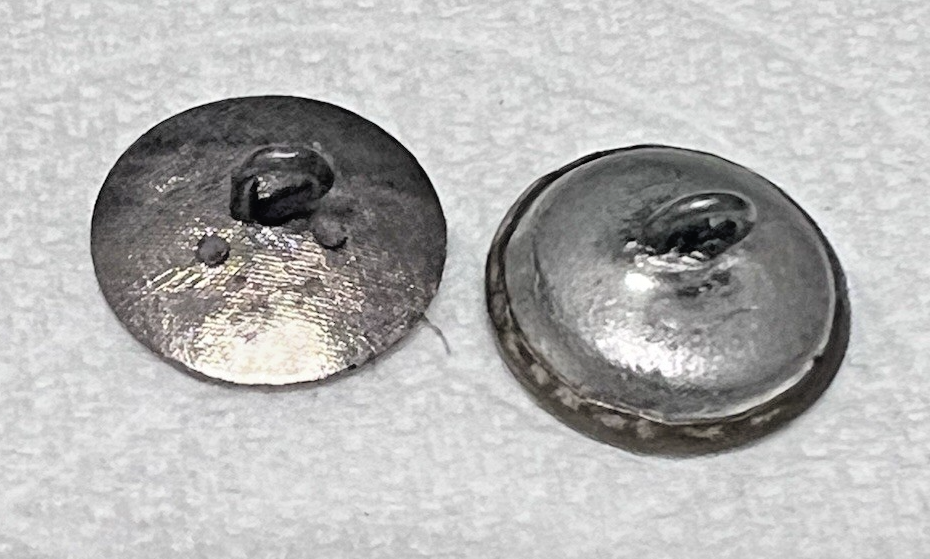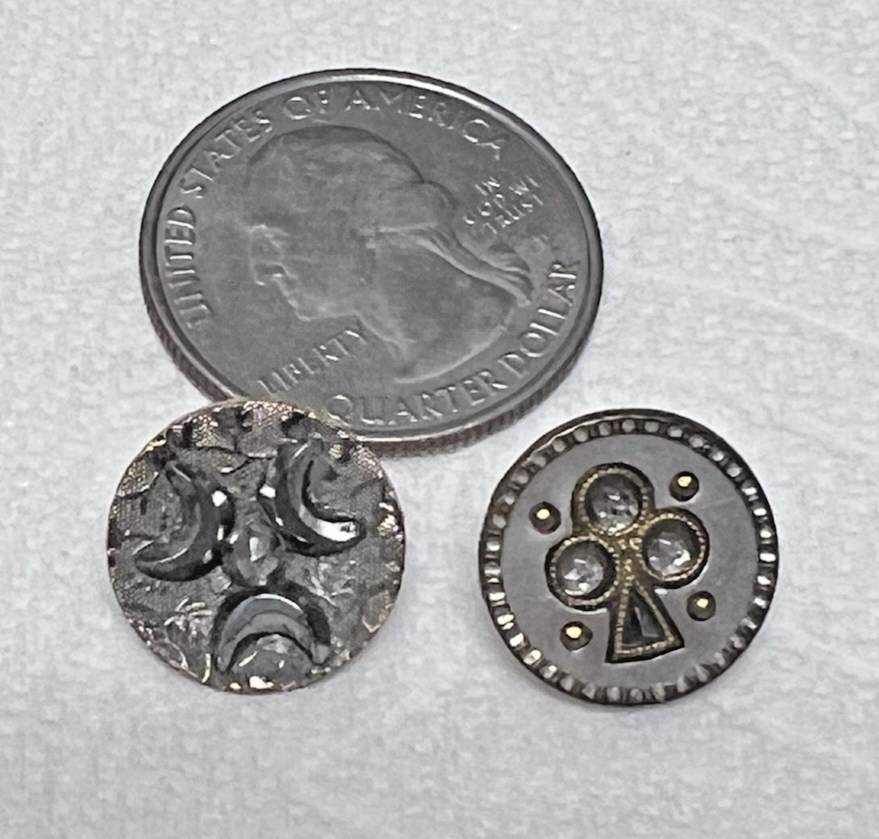 2 Vintage Round Metal Button Wiccan Crescent Moon Clover Key Hole Magical Cut Steel 5/8 inch