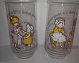 2 Vintage Genuine Coca-Cola Holly Hobbie Happy Talk Friendship Coke Glasses/Tumblers. One glass says The happiest times are those shared with friends. The other glass says Love is the little things you do. Excellent, vintage condition.