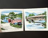 2 Vtg Screen Craft Ceramic Tiles Covered Bridges Vermont Trivet Wall Hanging 6”