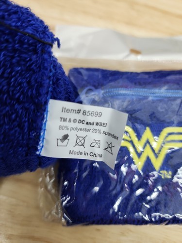 - 2 WONDER WOMAN Blue Terry Sweatbands with Zippered Pocket DC 2020 Race NIP