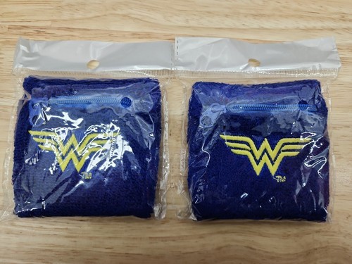 2 WONDER WOMAN Blue Terry Sweatbands with Zippered Pocket DC 2020 Race NIP