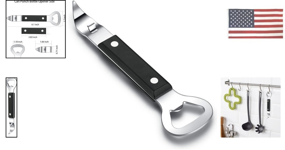 - 2-in-1 Manual Can Punch and Bottle Opener, Stainless Steel with Plastic Handl...