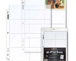 The BCW Pro 8-Pocket page is an acid free archival quality product that is perfect for storing tall or landscape trading cards. This product features high clarity polypropylene and toploading horizontal pockets with strong welds. BCW Pro 8-Pocket pages fit all standard 3-ring binders and albums. Use the 8 pocket page to protect store or display your tall collectible sports cards. These pages are also excellent for organizing grocery store coupons.