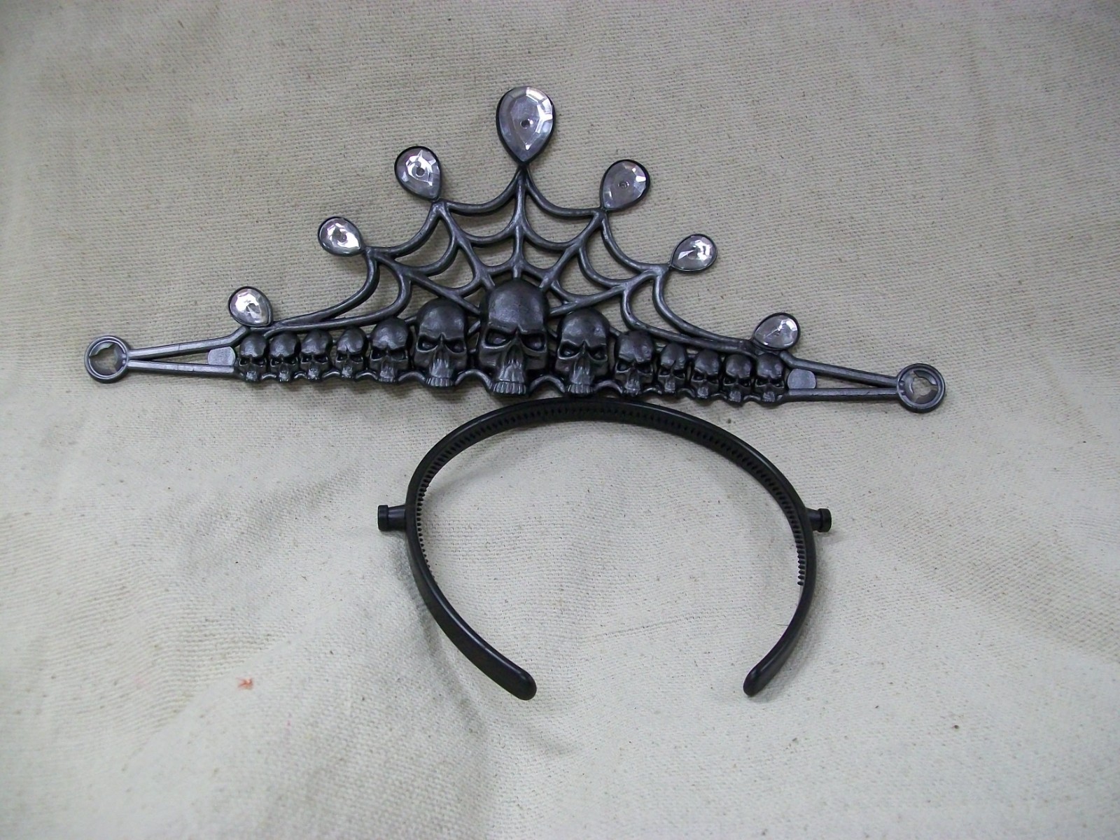 - 2 pc Gothic Princess Tiara Evil Underworld Queen Persephone Pirate Skulls Web
