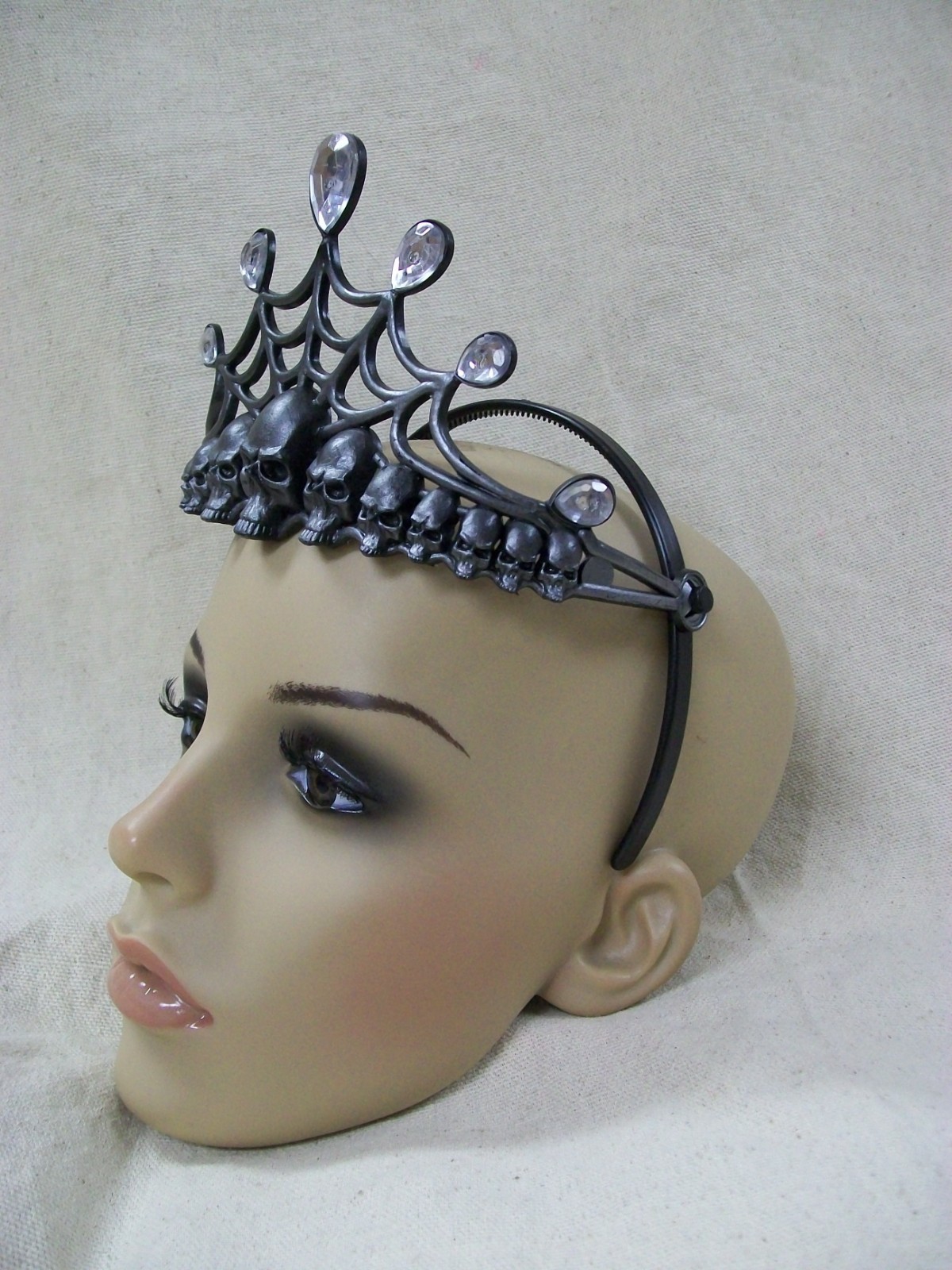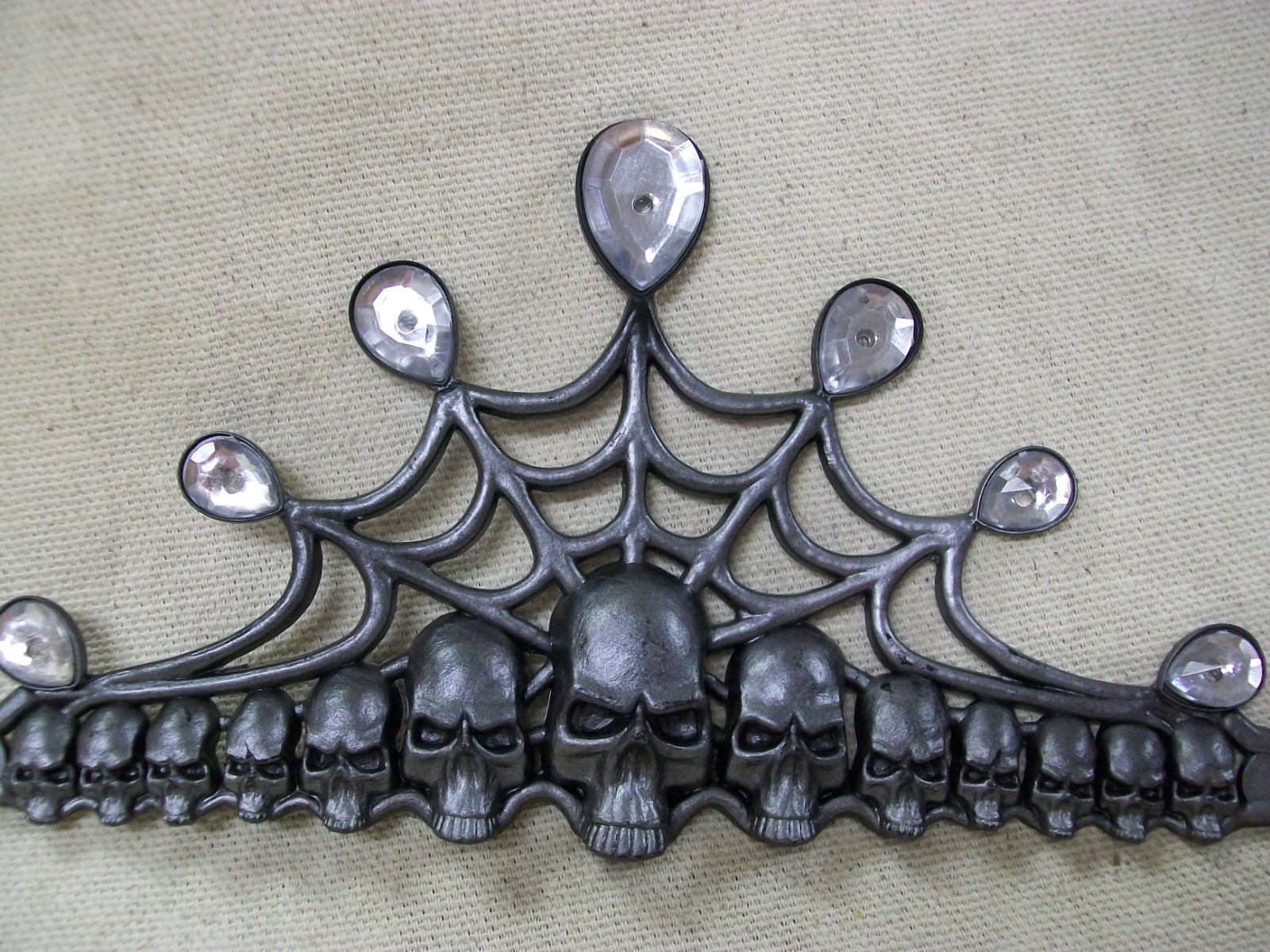 2 pc Gothic Princess Tiara Evil Underworld Queen Persephone Pirate Skulls Web