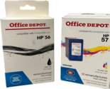- 2 pcs - Office Depot Ink Cartridges - 1x HP56 black, 1x HP57 Tricolor - NEW