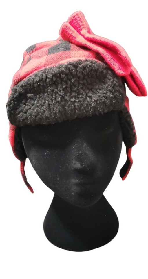 - 2 piece set Winter plaid red/black trooper Hat Set With red Gloves