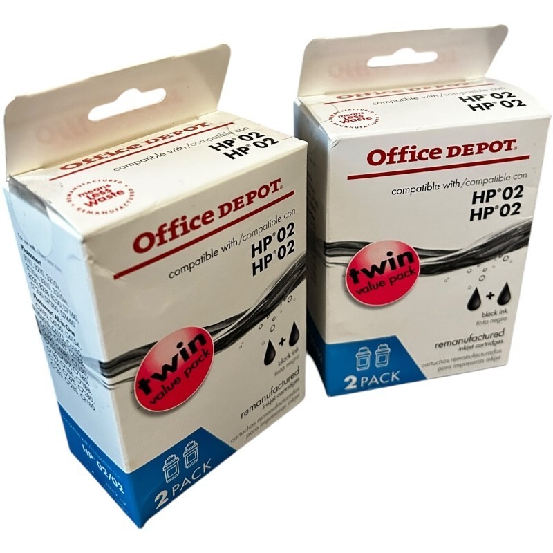 - 2 twin value pack (4pcs) Office Depot Brand HP 02 compatible Black Ink Cartridge