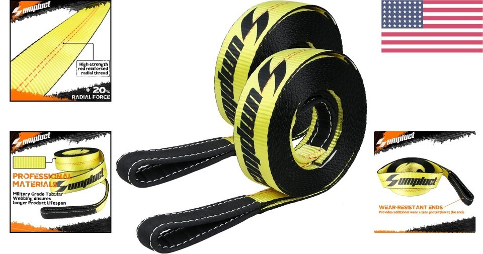 Heavy Duty: Crafted from high-level polyester, these tow straps are 2 inches wide and 20 feet long, with a remarkable 20,000-pound capacity.