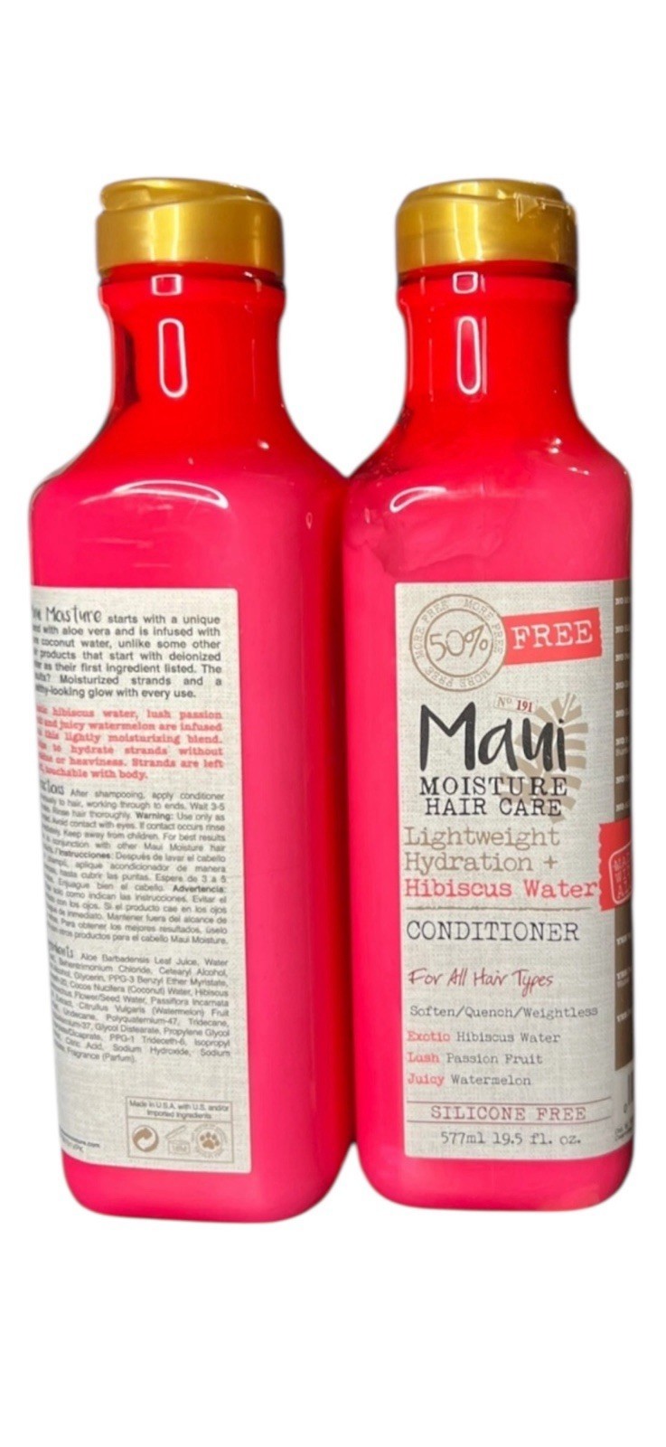 - 2 x Maui Moisture Lightweight Hydration + Hibiscus Water Conditioner, 19.5oz EA