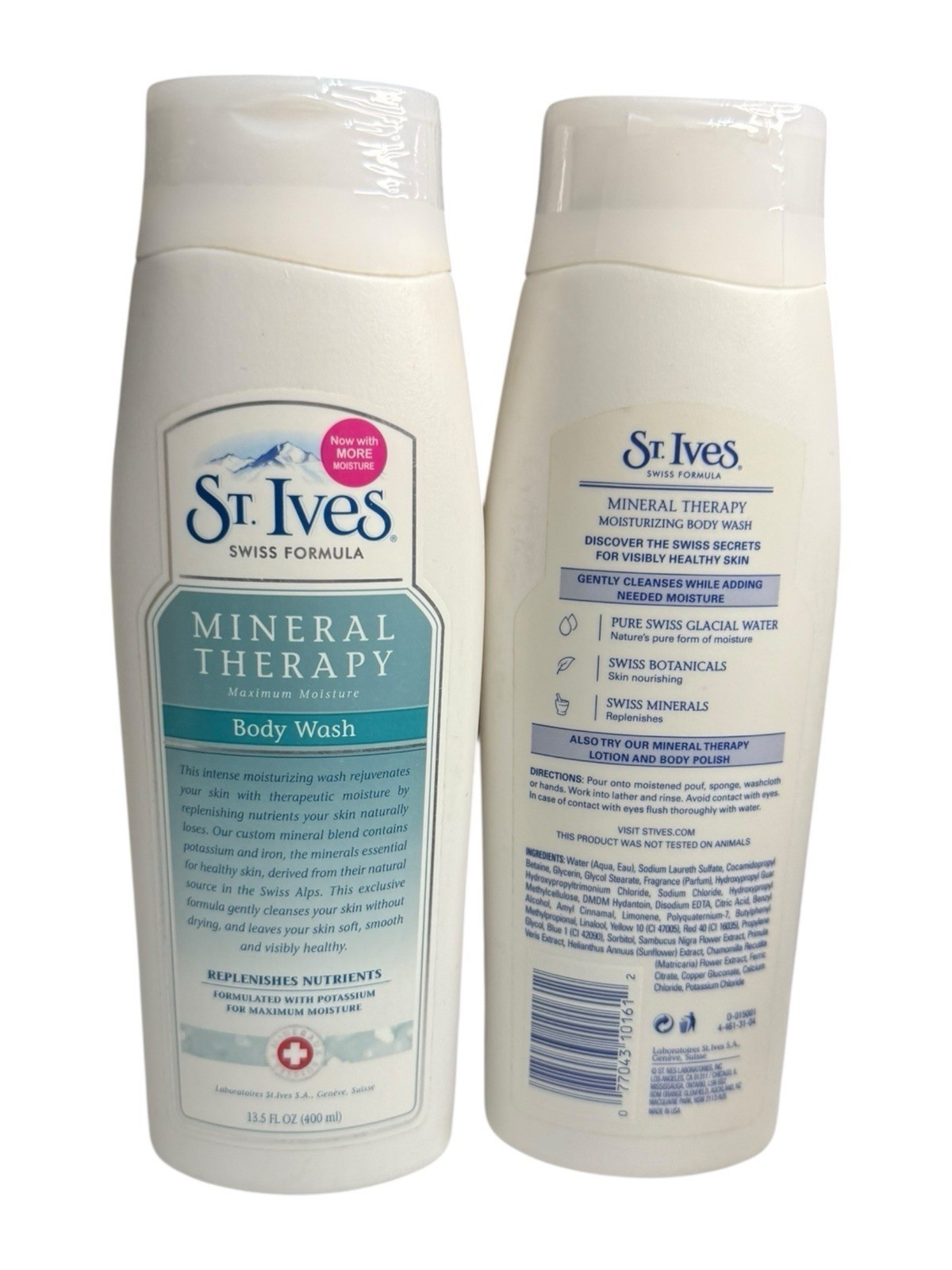 - 2 x St. Ives MINERAL THERAPY Maximum Moisture Body Wash Swiss Formula 13.5 fl oz