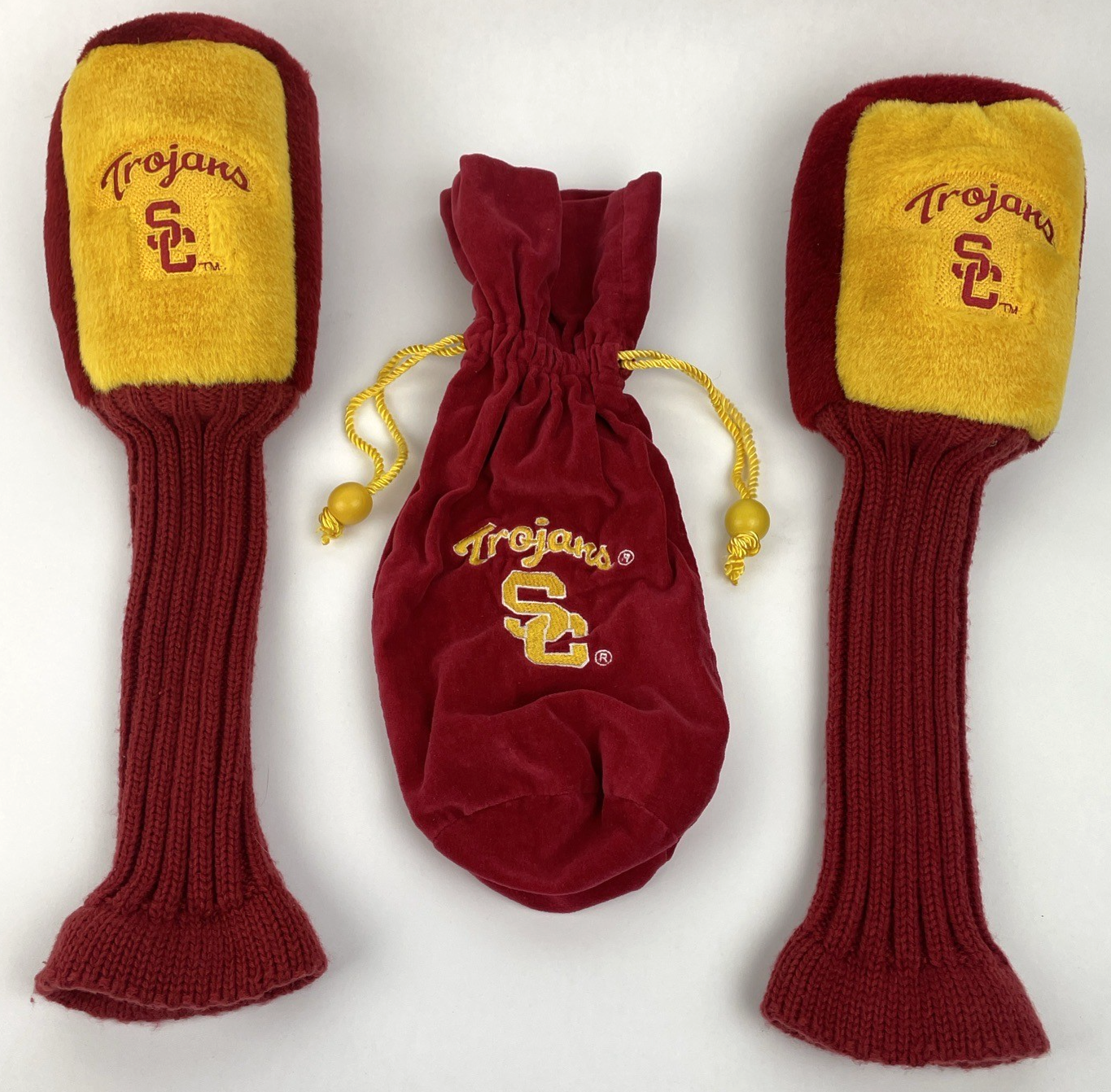 Lot of 2 x Vintage 80s USC Trojans Golf Club Driver Head Cover (s) and Accessories