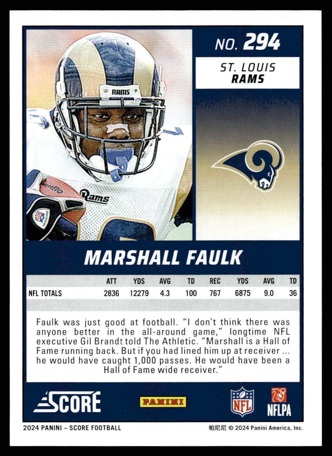 - 20/20 - 2024 Score NFL Football #294 Marshall Faulk Green St. Louis Rams - Mint!