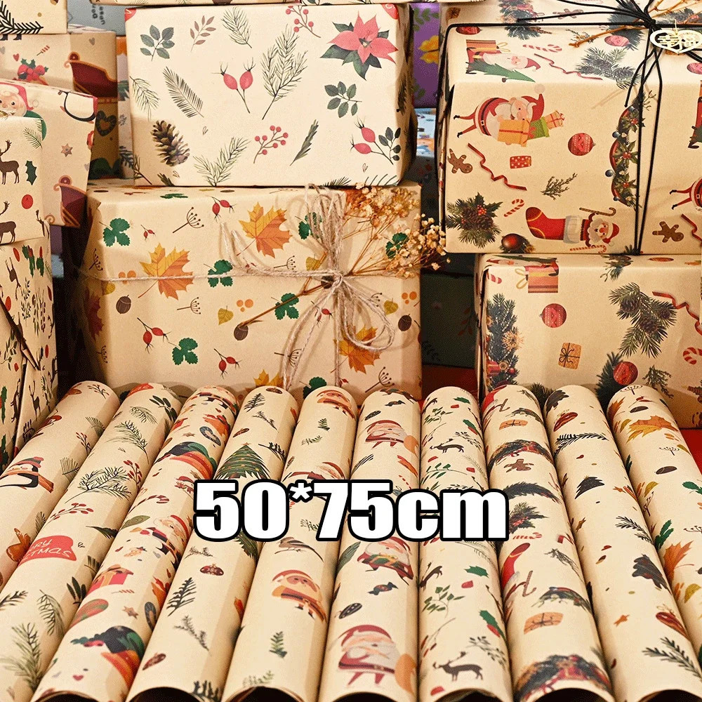 - 20/2pcs Vintage Christmas Gift Wrapping Paper Single-sided Kraft