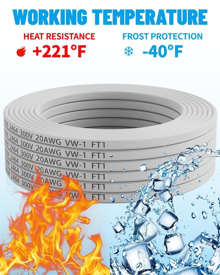In order to improve the customer's experience, the 20 gauge 30FT wire also comes with 6 ties and 1 roll of insulating tape to better insulate, protect and organise the low voltage wires during use