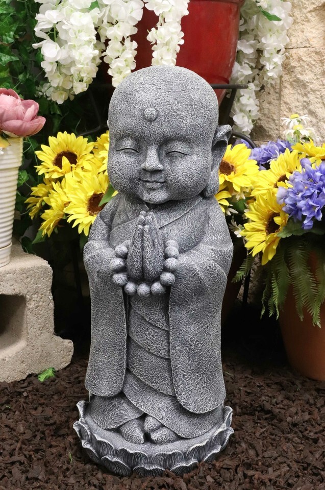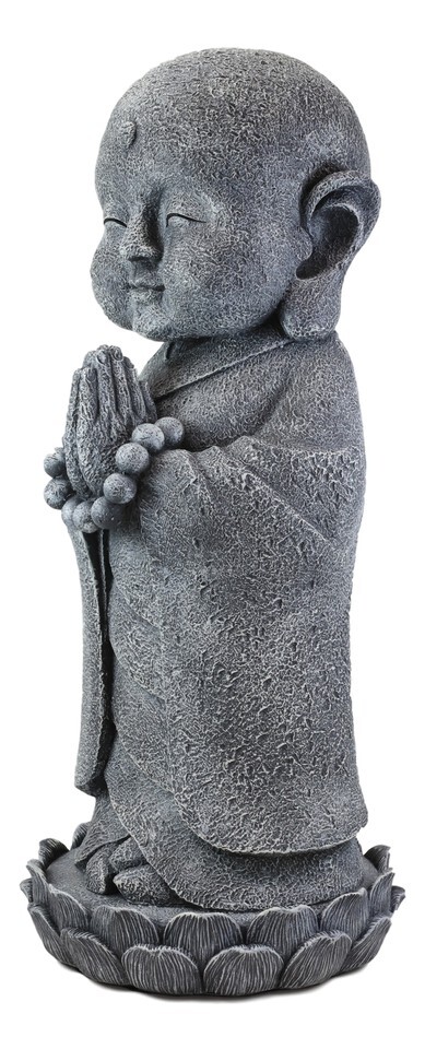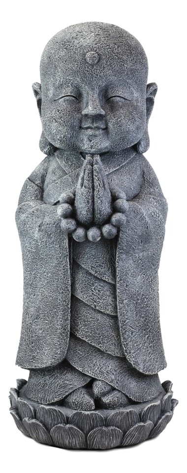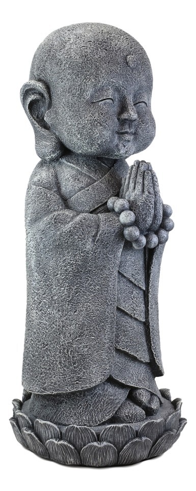 ? This Buddha monk will bring peace to your home, garden or balcony. Excellent for decor and perfect for gifting. The jizo monk holds one hand in a Namaskara adoration mudra pose with prayer beads around both palms. The Jizo Buddha is the protector of children and a symbol of luck.