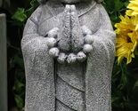 - 20"H Large Jizo Buddha Monk With Prayer Beads On Lotus Throne Garden Statue