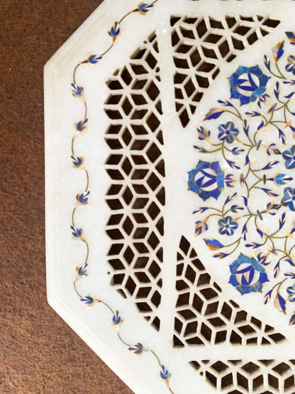 20" Handmade Marble Table Top with Real Gemstone Inlay Work