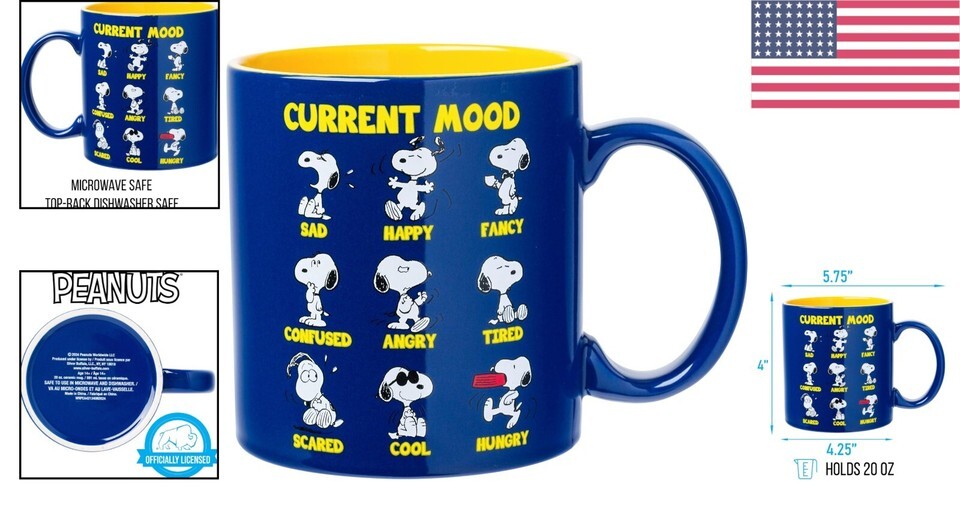 Primary image for 20 Oz Snoopy Ceramic Mug with Mood Designs - Microwave & Dishwasher Safe