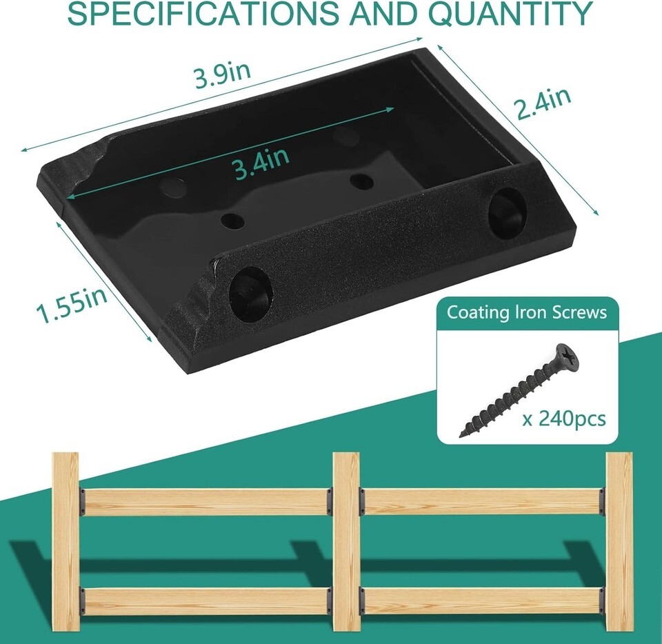 - 20 Pack Durable Deck Railing Brackets Connectors with 120 Screws - Black Nylon