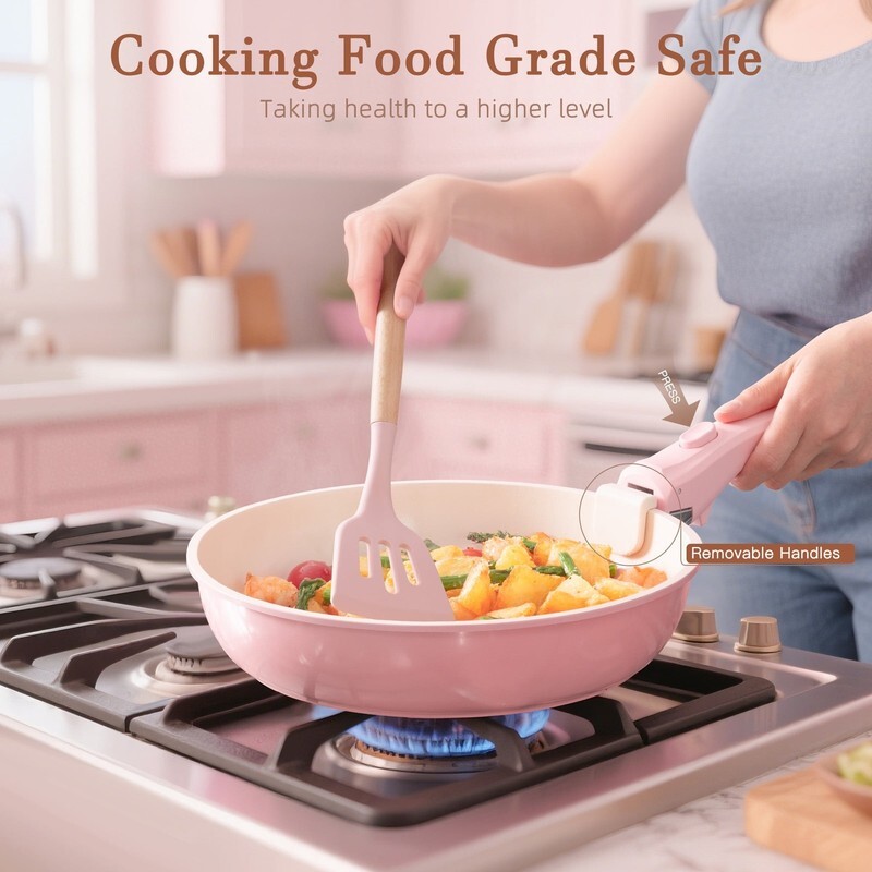 - 20-Piece Ceramic Pots and Pans Set Nonstick Cookware Set with Detachable Handles