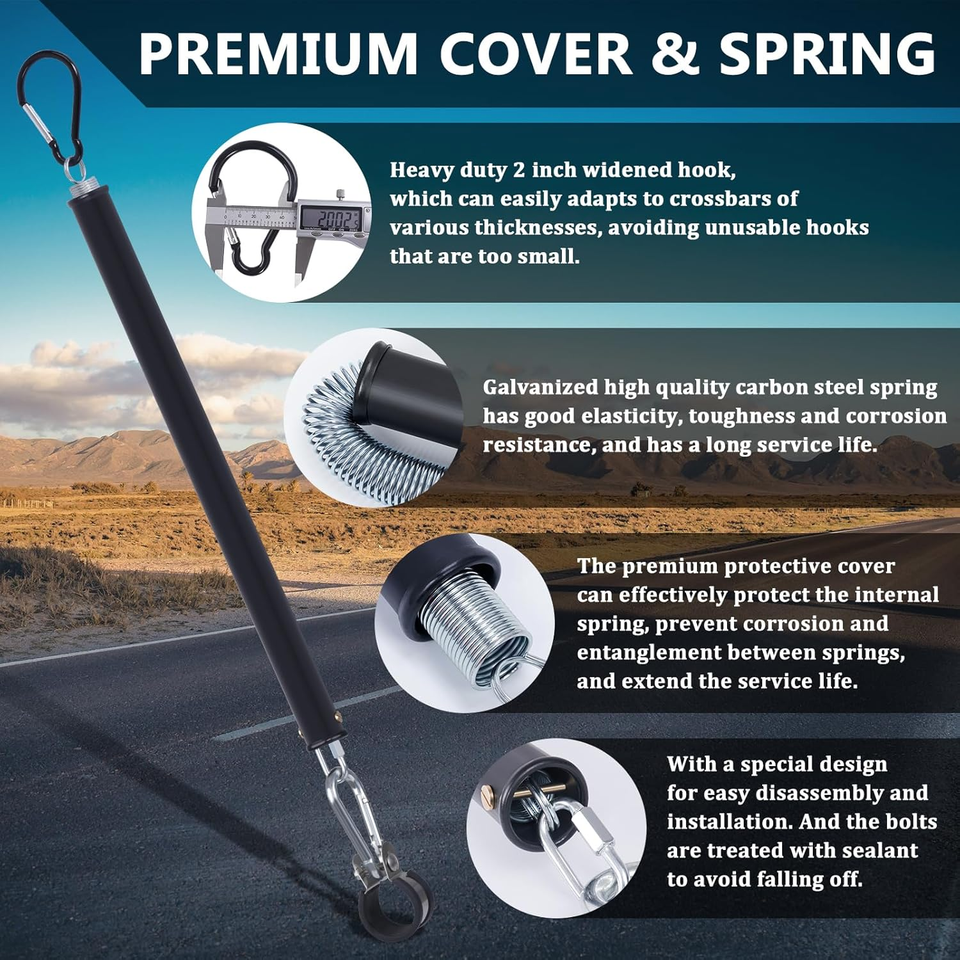 2? wide heavy-duty hooks fit larger diameter crossbars without slipping.