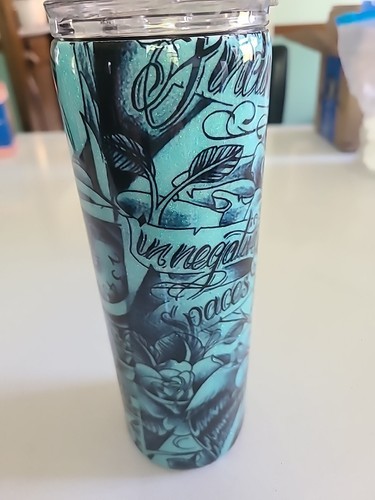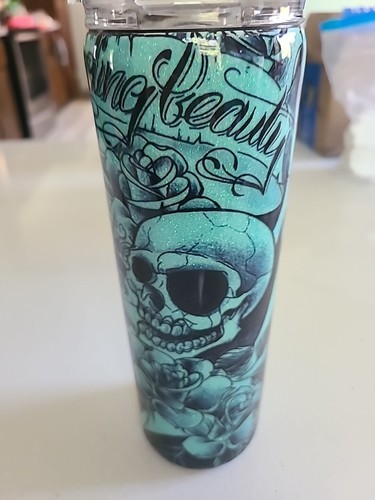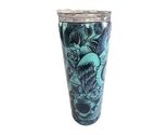 20 oz skinny tumbler Teal Skull Floral Glitter Goth Dia De Los Muertos Stainless