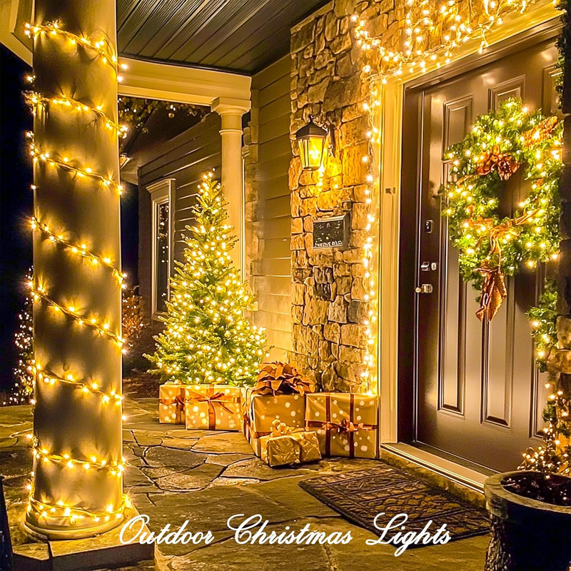?LED Christmas Lights Outdoor for Decor? Wrap Christmas lights around garlands, railings, gates, Christmas trees. Keep them up year-round in your house, garden, porch, patio or balcony, transforming every corner. With a 10-foot lead wire, you can plug the twinkle fairy string lights plug in where you need. On the gentle night, the Christmas string lights for outside illuminated the courtyard and garden, casting a glow that intertwined with the warm white Christmas tree lights from within the house.