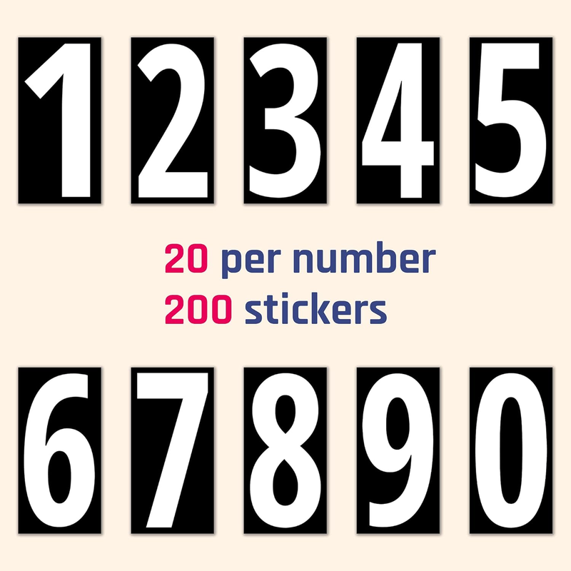 - 200 Pieces, 3" - Vinyl Number Stickers, Waterproof Stick on Numbers - White Numb