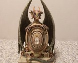 This is Myles Pinkney's "Safe Keeping" Dragon. Dragon measures 6 1/2 tall x 3 1/2 across and 2 3/4 deep. The center opens up and "safe" is about 3/4 deep. Dragon is a slivery blue color with goldtone head.