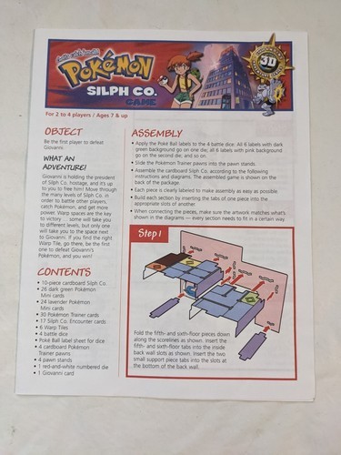 A vendre est un jeu de societe Pokemon Silph Co 3D Milton Bradley 41439 d'occasion de 2000. Il manque 2 des au jeu.
