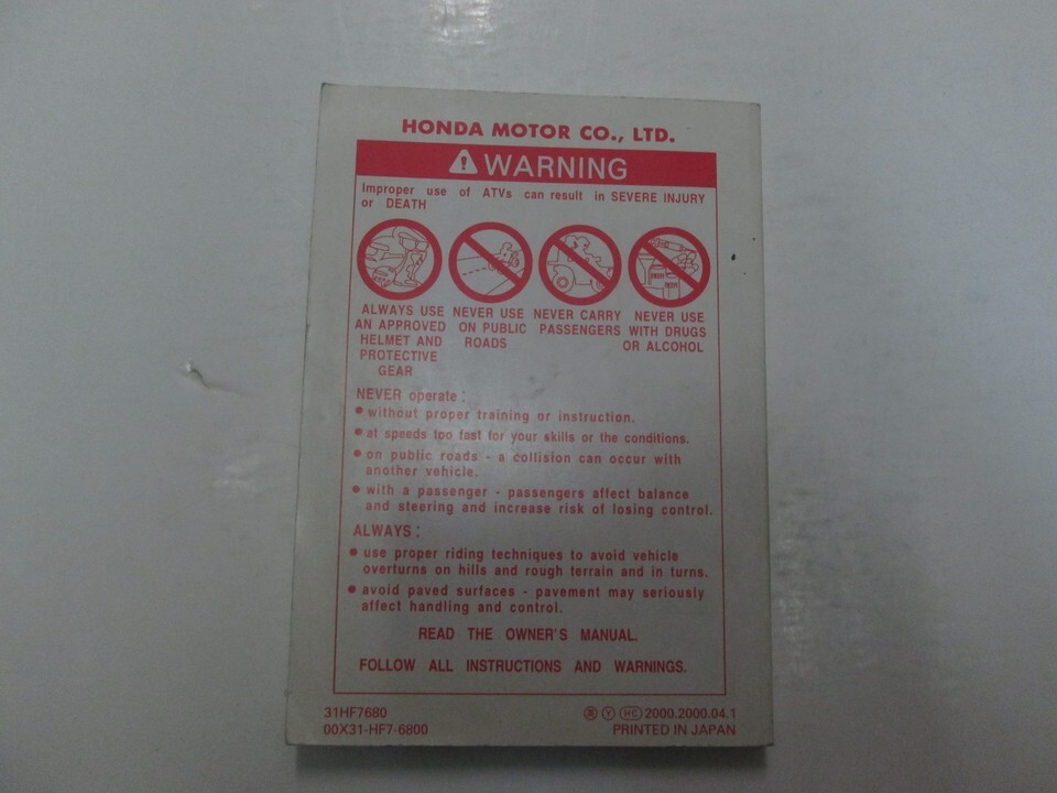 - 2001 Honda TRX90 Fourtrax 90 Proprietari Owner Operatori Manuale Nuovo