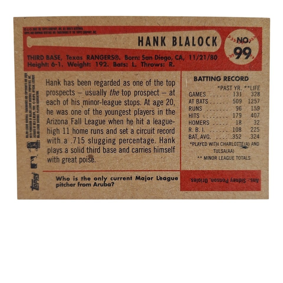 - 2002 Bowman Heritage Hank Blalock #99 Texas Rangers MLB Baseball Card