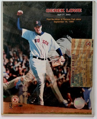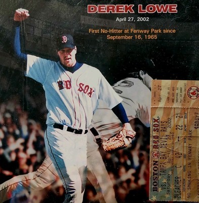 - 2002 Derek Lowe 8x10 Photo 1st No Hitter Fenway April 27 With Ticket Stub DWR4