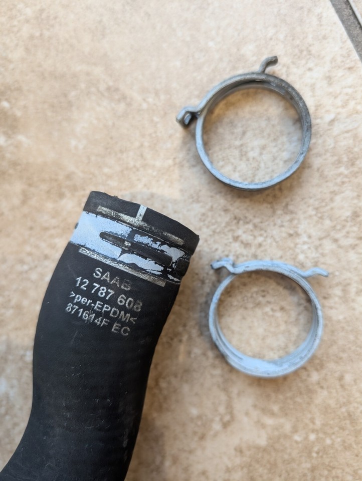 2003 - 2011 Saab 9-3 2.0 L OEM Original Upper Radiator Hose 12787608 Hose Clamps