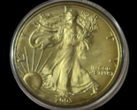 - 2003 American Silver Eagle Dollar 1 oz Fine Silver Coin Golden Gilded Bullion