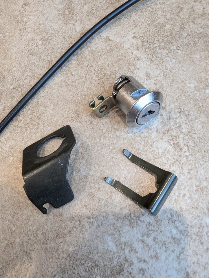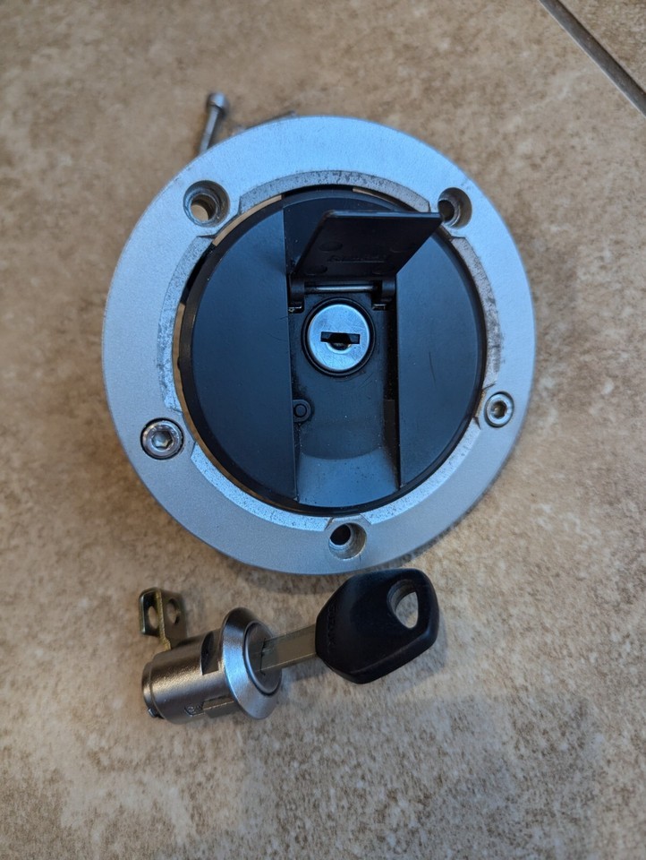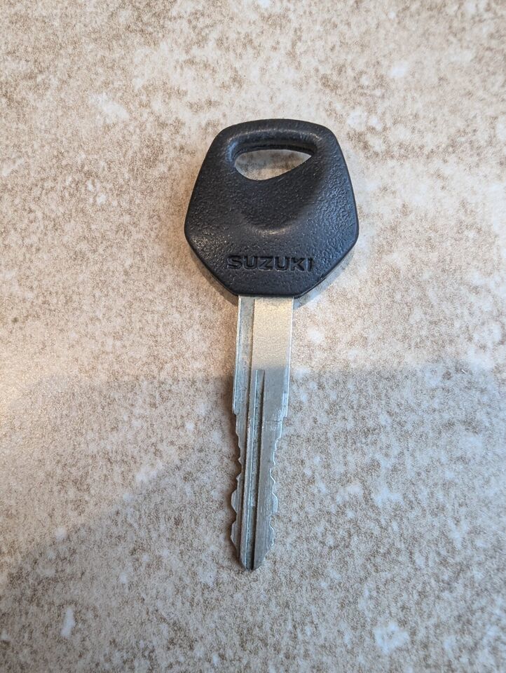 - Set includes OEM Suzuki Key, Gas Tank Cap / Lock with bolts, Seat Compartment Lock with Fasteners and Latch Cable
