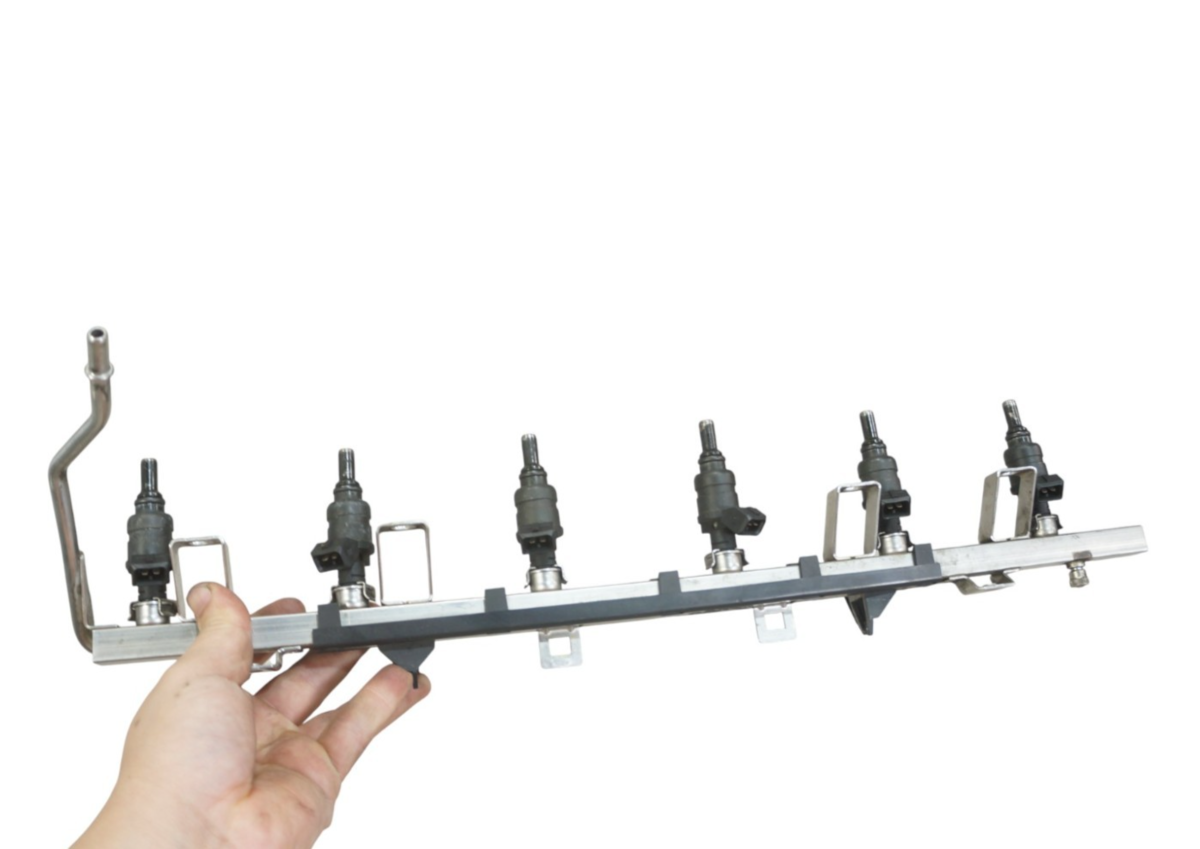 - 2004-2006 bmw x3 e83 3.0l engine fuel injector rail bracket w/ injectors oem