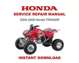 This manual includes model years 2004-2009 for the Honda TRX450R ATV. This service manual is the most up to date version. This manual would be used by a technician at a shop.