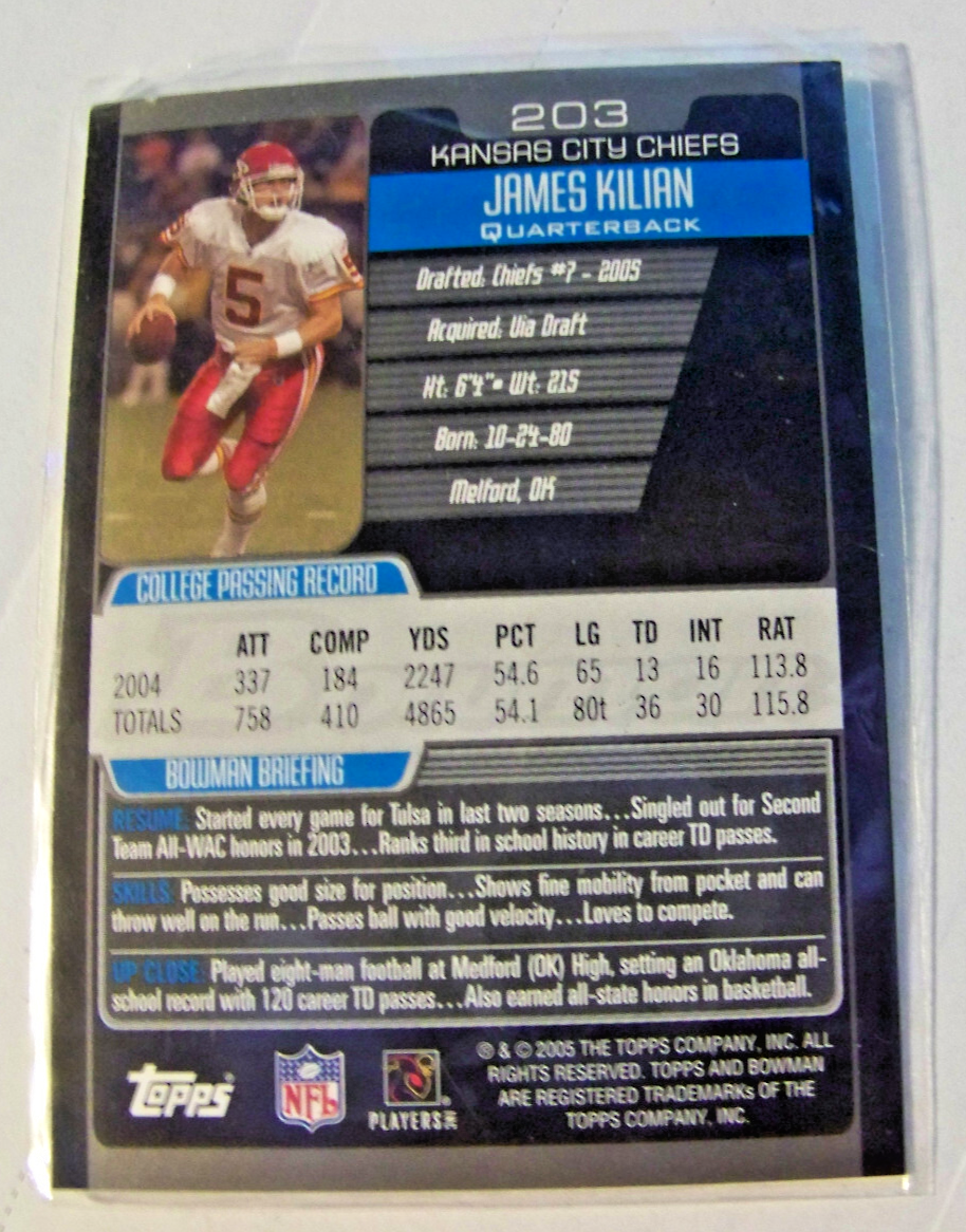 - 2005 JAMES KILIAN-Kansas City Chiefs #203 & MERLE HUFFARD #34 FOOTBALL CARDS