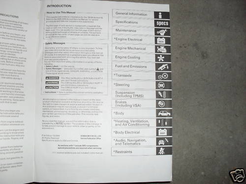 STOCK PHOTO: WELL USED showing signs of condition issues. Issues Possible: Rips/tears/tape/missing covers/writing on covers or pages/water damage/etc.. If we have multiple copies we will send the best we have. Full of information and illustrations, step by step Instructions, exploded illustrations and/or diagrams, great manual to have when you own HONDA ACCORD V6. This manual will save you money in Repairs/Service. If you are not satisfied with your shopping Experience, please contact us to get a solution before you decide to leave a NEUTRAL or a NEGATIVE Feedback, We will do our best to solve any problems for you as soon as possible. We will provide you with the BEST POSSIBLE service because the POSITIVE Feedback and FIVE Stars are what we are striving for. Please email me through "My Mes