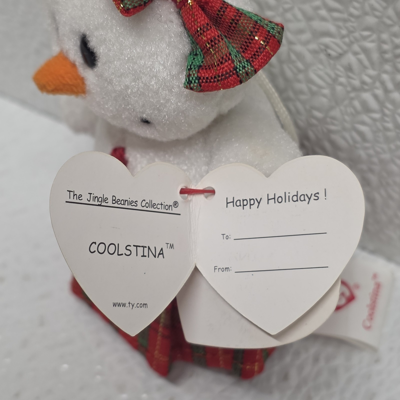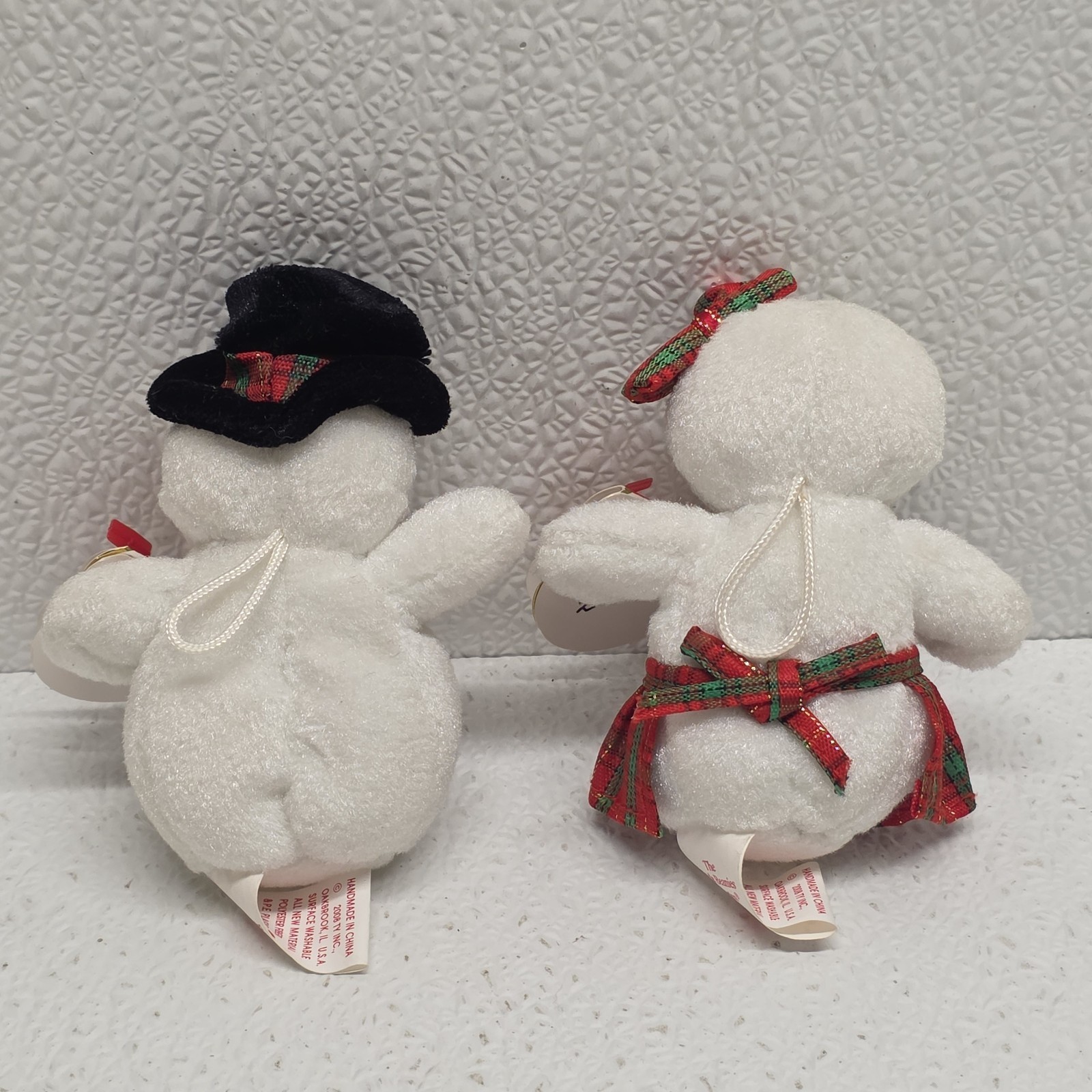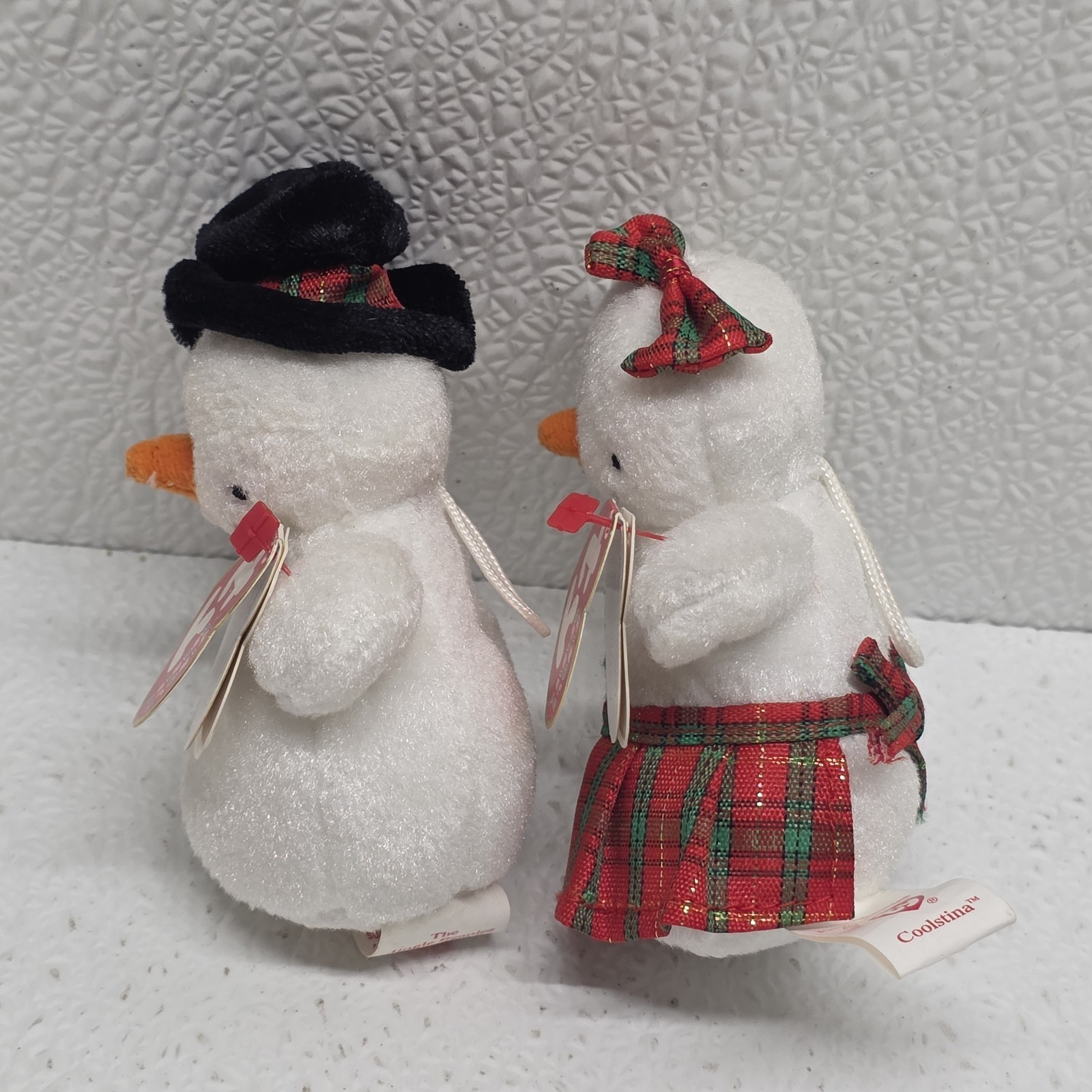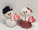 - 2008 Ty Jingle Beanies Snowmen Coolstina & Coolston Ornaments Beanbag Mini Plush