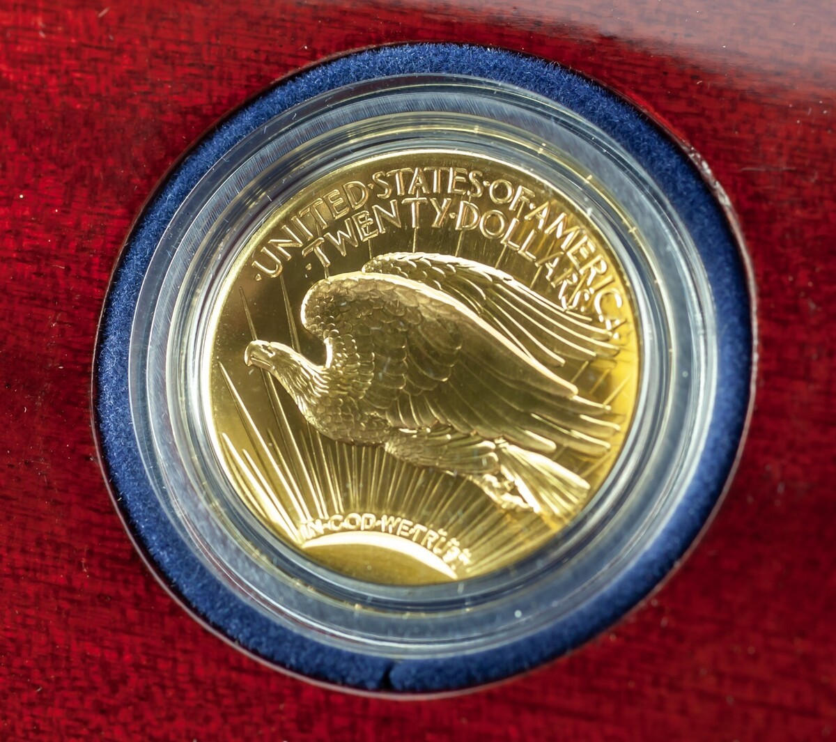 2009 Ultra High Relief 1 oz. St. Gaudens .9999 Gold Coin Box, Case und CoA OGP