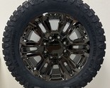 New Set Of Four GM Replica 20" 8 lug (8-180 bolt pattern) Black Chrome Denali Style Split Spoke Wheels With Blackhawk Ridgecrawler R/T LT275/65R20 Tires for 2011-2025 GMC Sierra 2500.