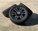 New Set Of Four GM Style Replica 20" 8 lug (8-180 bolt pattern) Gloss Black Split Spoke Wheels With Blackhawk Ridgecrawler R/T LT275/65R20 Tires for 2011-2025 GMC Sierra 2500.