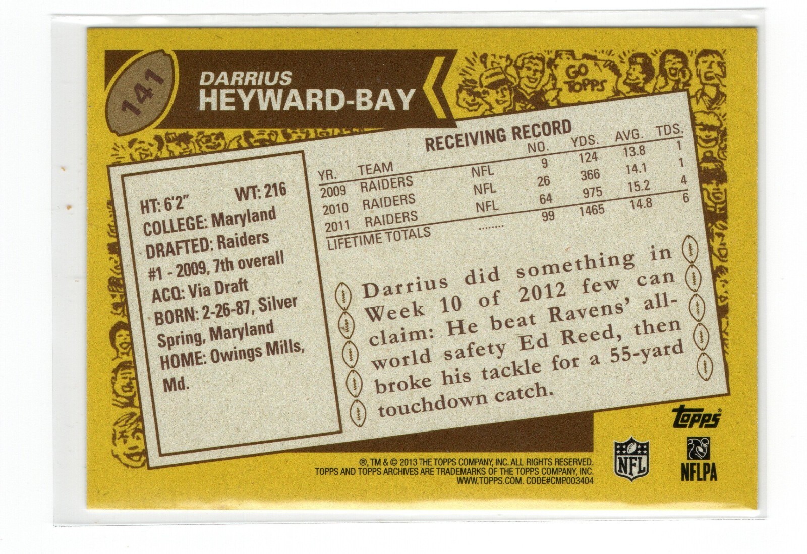 - 2013 Topps Archives Gold Darrius Heyward-Bey #141 Oakland Raiders Retro Foil -NM