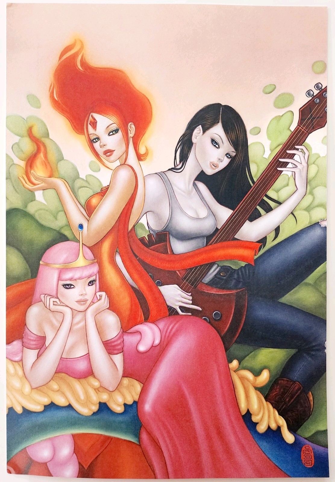 - 2014 Adventure Time Poster Bubblegum Flame Marceline Mimi Yoon 16 x 11" DWJJ8