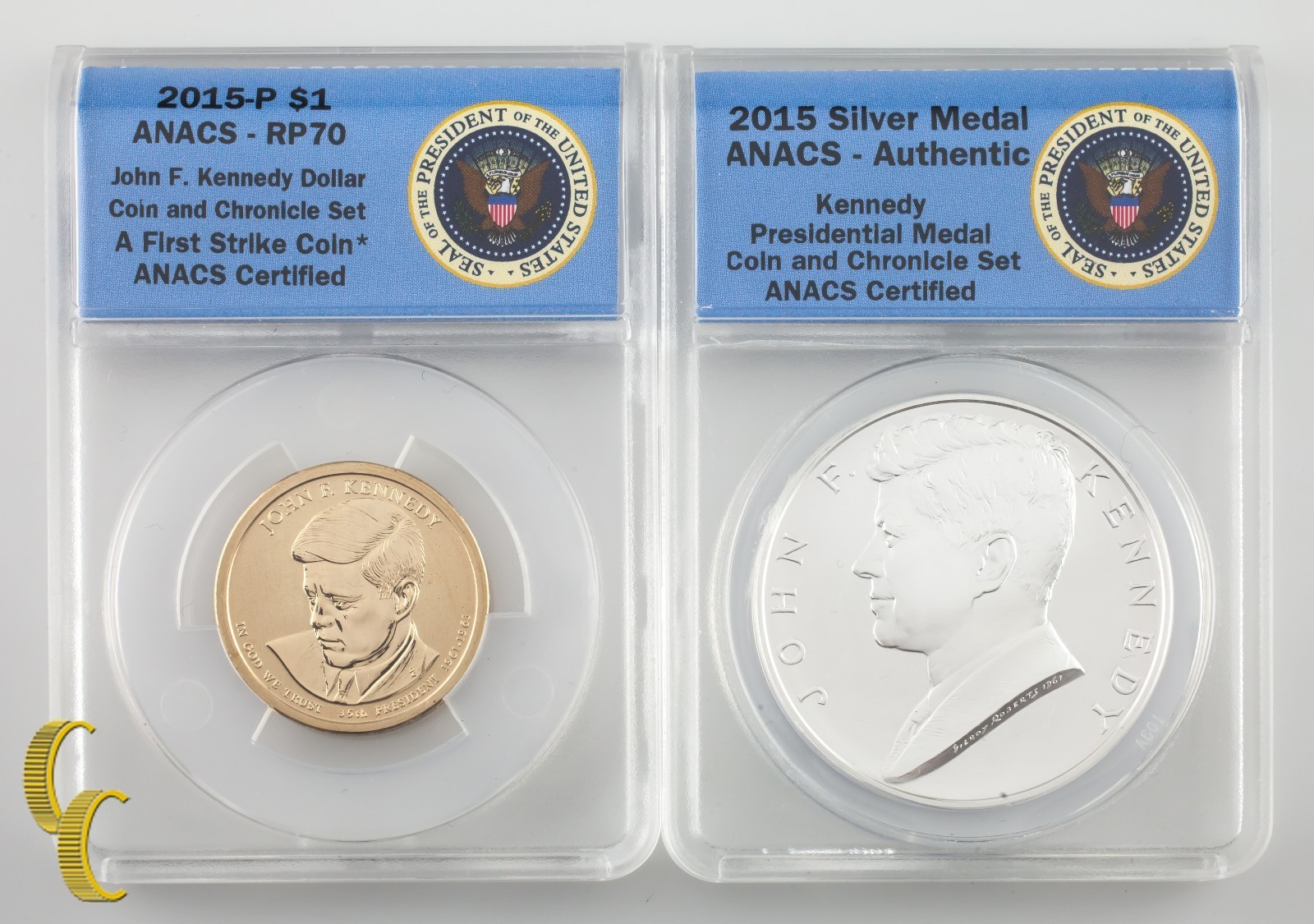 2015 Kennedy Pièce de Monnaie & Chronicle Kit : Dollar & Argent Medal Anacs